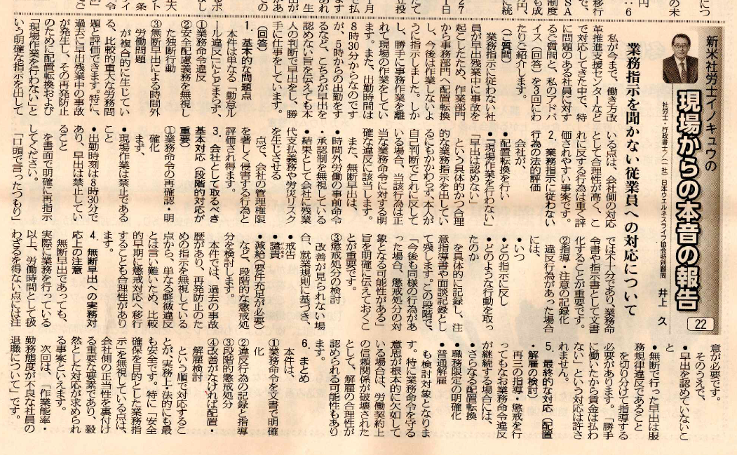 2026年1月12日(月)掲載分 第22回 業務指示を聞かない従業員への対応について