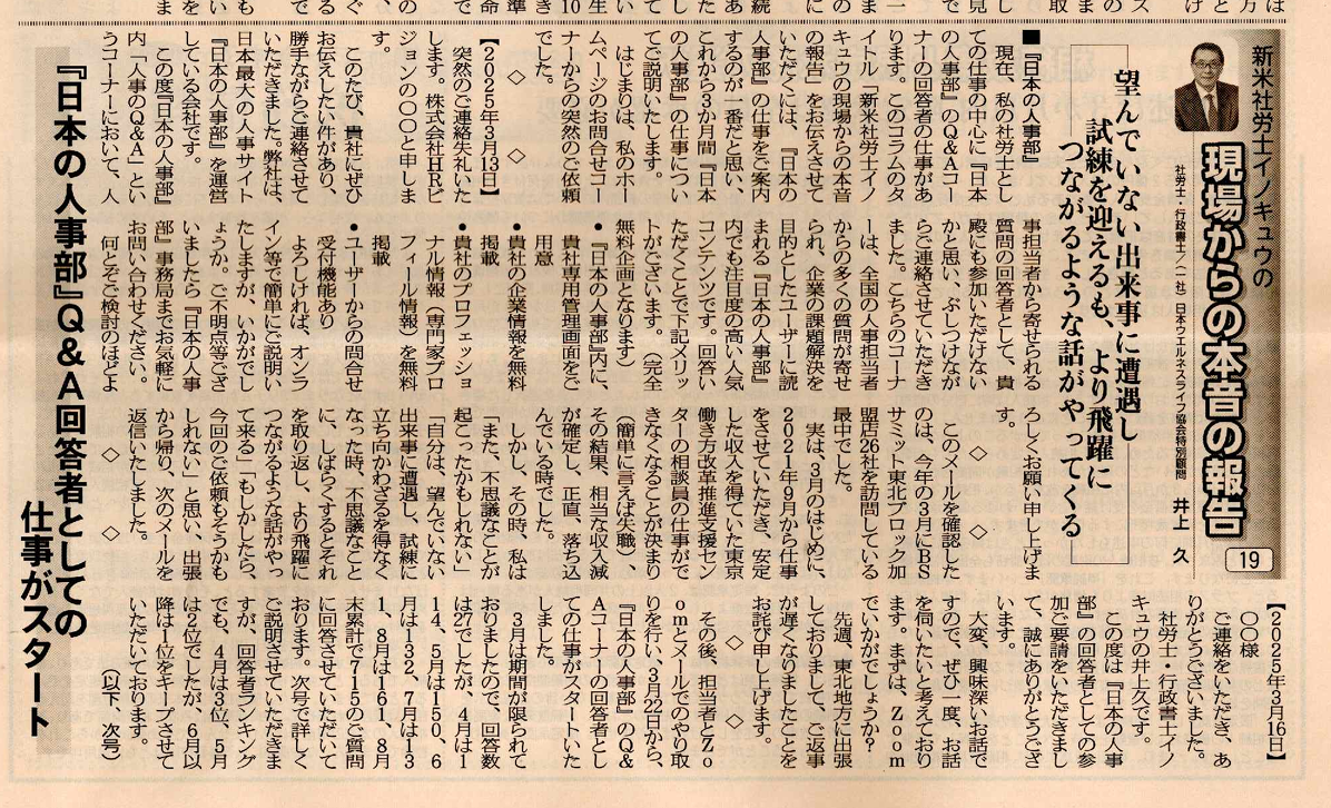 日本の人事部のQ&Aコーナーの回答者としての仕事がスタートいたしました。